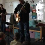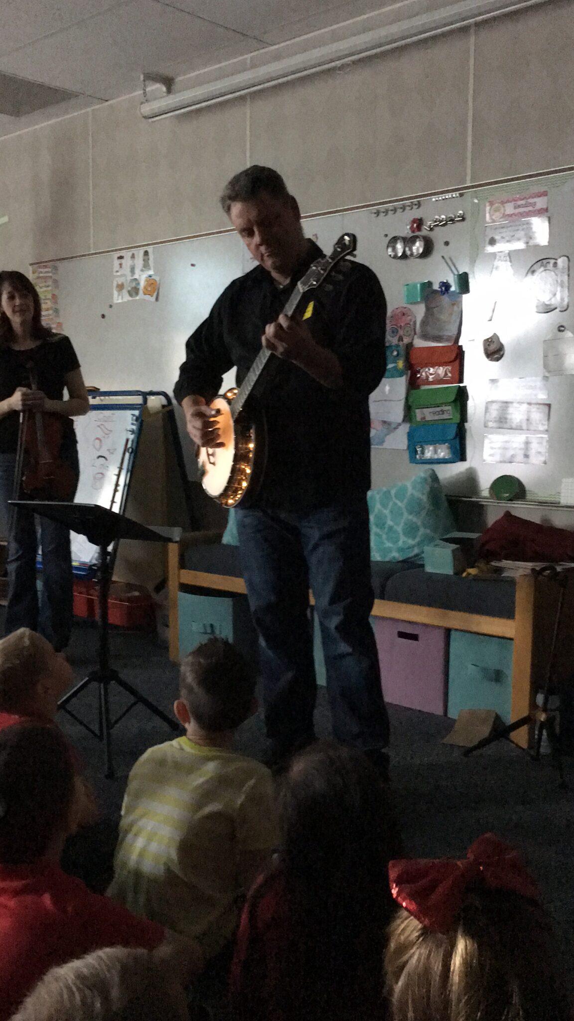 Craig and Tamilisa Miner play for kindergarteners during the Christmas season with a lit up banjo. 2017 December 20_Kindergarten Gig Sizes: 150 × 150 / 169 × 300 / 768 × 1,365 / 576 × 1,024 / 864 × 1,536 / 1,152 × 2,048 / 175 × 131 / 281 × 500 / 1,441 × 2,560 Tamilisa and Craig Miner play for kindergarteners during the Christmas season with a lit up banjo.