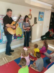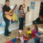 The Miners plying bluegrass at PreSchool 2017 May 09_PreSchool Music Gig Sizes: 150 × 150 / 225 × 300 / 175 × 131 / 375 × 500 / 720 × 960 The Miners, 2017, playing bluegrass instruments for a Preschool group.